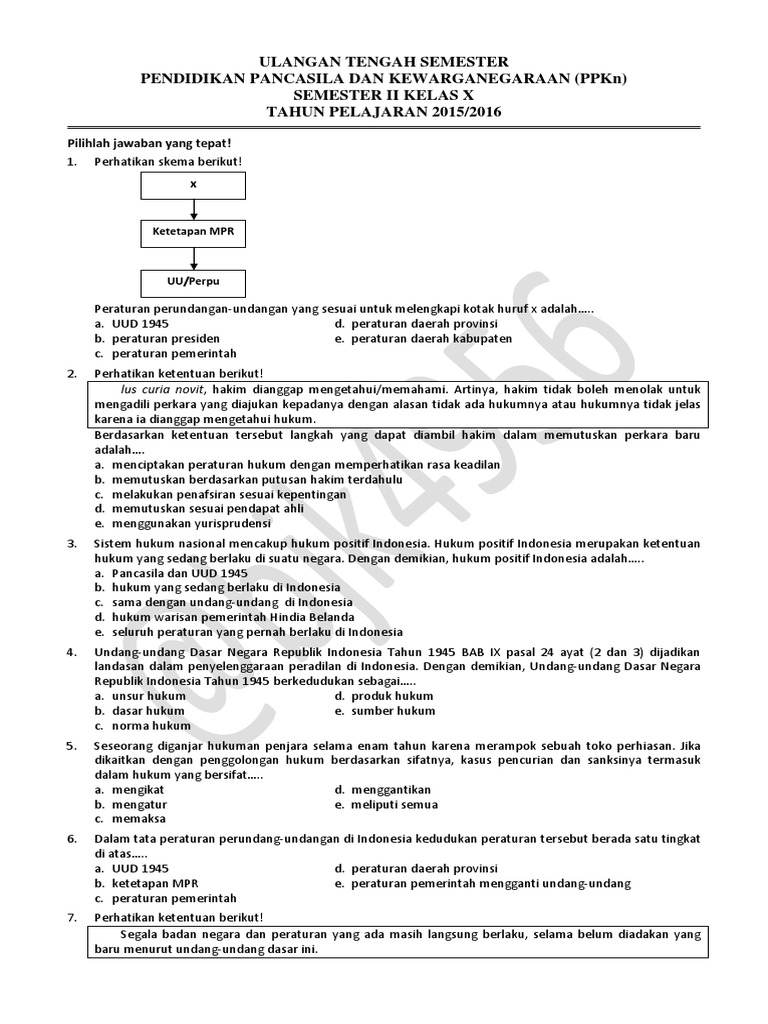 Soal Ulangan Tengah Semester PPKn Kelas X dan XI